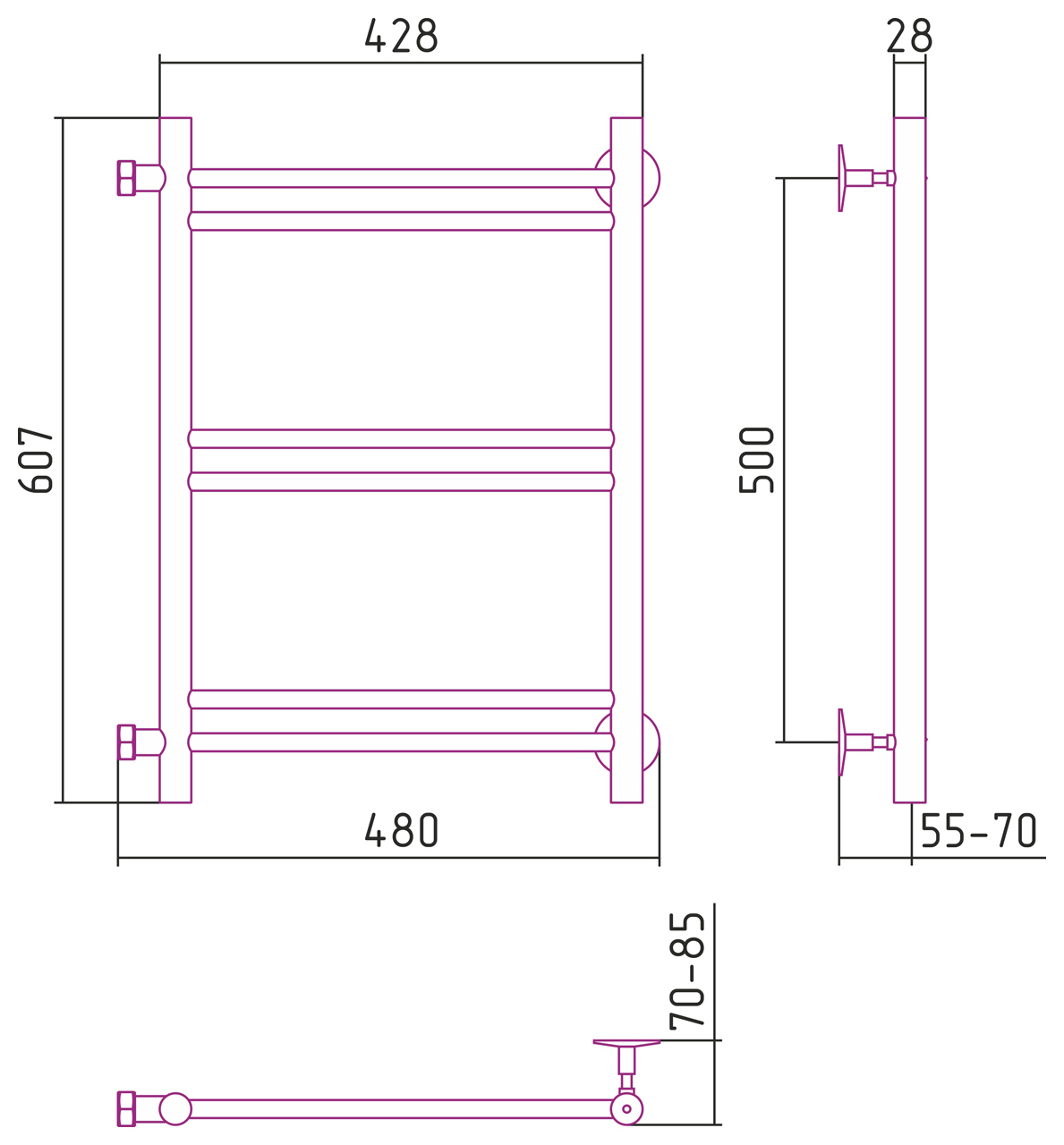 Полотенцесушитель водяной Стилье Версия-Б1 500x400